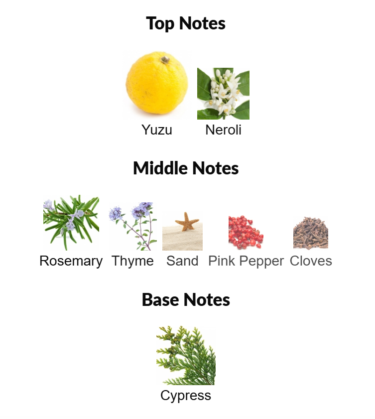 "The ecstasy of the sun, the rhythm of the sea and the gentle warmth of sand on the skin. Master perfumer Jacques Cavallier Belletrud blends the infinite emotions of a day spent on a sunny beach. Yuzu, a rare citrus from Japan, is a burst of bliss on the skin. Its surprising freshness and brightness glides into the softness of neroli. Thyme, rosemary, pink pepper, cloves… a sandy note of aromatic herbs perfects the olfactory landscape, while a veil of cypress brings generous, woody shade to a pure summer day."