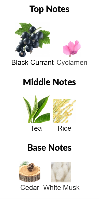 "One Umbrella for Two, a sweet, fruity and gourmand Blackcurrant absolute encounters a Genmaicha Tea extract and a Cedarwood oil to form a perfect matching trio."